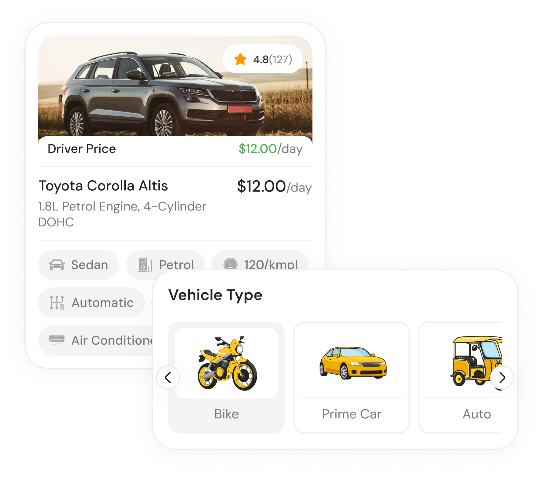 Choose from a variety of reliable rental vehicles to match your travel needs. Enjoy flexible durations, transparent pricing, and a smooth, hassle-free booking experience.
